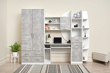 Стенка Юниор-2 Лофт бетон светлый / белый