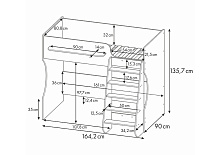 Лестница может быть установлена как с левой, так и с правой стороны кровати.