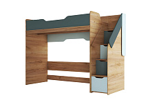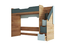 Кровать-чердак Rich дуб крафт золотой / пастельный зеленый / сумеречный голубой