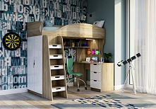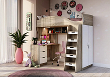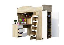 Кровать-чердак Сэнди дуб сонома светлый / белый глянец