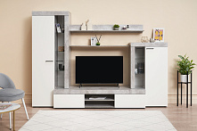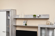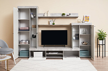 Ниша размером 121 см в ширину и 82.4 см в высоту подходит для большинства стандартных телевизоров. Вокруг остаётся место для колонок и другой техники. Полки и нижние отсеки идеально подходят для приставок и трансляторов. Теперь можно избавиться от запутанных проводов под ногами.