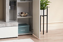 Пенал высотой 126 см комплектуется двумя стационарными полками в секции с глухой створкой и двумя стеклянными полками в секции со стеклостворкой.