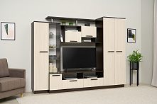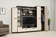 Цвета «Лоредо» и «Венге» добавляют помещению объёма и элегантности. Матовая поверхность ЛДСП минимизирует отпечатки и блики, сохраняя эстетичный вид. Такой современный стиль подходит для любой гостиной — от минимализма до классики.