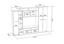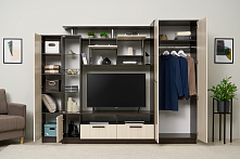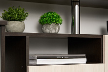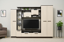 Стенка «Вега» разработана для комфортного размещения телевизора. Ширина ниши — 115 см, что подходит для большинства современных моделей, а высота 75.2 см оптимальна для удобного просмотра. Также есть место для дополнительной техники, книг или декора, превращая вашу гостиную в центр внимания.