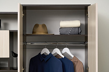 Если вам не хватает места для хранения одежды в спальне, шкаф в стенке станет отличным решением. Содержит горизонтальную штангу для вешалок и два ящика внизу для белья или аксессуаров. Всё это в одном месте — удобно и доступно.