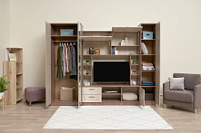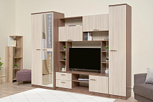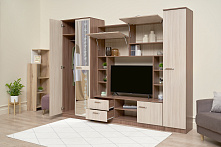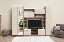 Полезная информация: Глубина 53 см — стандартно для хранения одежды на плечиках. Шкаф и пенал неразделимы — стенка устанавливается только вместе, секциями. Зеркало на фасаде — только с одной стороны.
