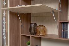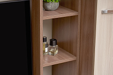Модули из ЛДСП — всё стандартно: выровнять, закрепить, поставить двери. Высота 210 см — не нужна стремянка для установки. Части идут по секциям: собирать проще, если делить на этапы. Не потребуется подгонка по месту, если стены ровные.