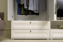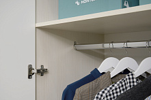 Стенка «Престиж 1 Вариант №4» помогает поддерживать порядок в гостиной благодаря своей просторной конструкции шириной 320 см. В ней есть место для всего: от одежды до мелких бытовых вещей. Шкаф для одежды и 6 ящиков обеспечат необходимое пространство для хранения, а горизонтальная штанга для верхней одежды гарантирует, что она будет аккуратно размещена. Мебель остаётся визуально лёгкой и не перегружает пространство благодаря светлому цвету «Сандал светлый».
