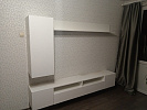 Основная тумба выдерживает нагрузку до 30 кг, что подходит для большинства телевизоров и другой техники. Стенка крепится к стене, что обеспечивает её безопасность и устойчивость. Такое решение помогает освободить пол и создаёт ощущение большего пространства.