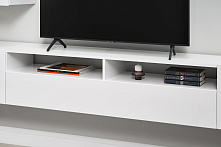 Стенка Соло-16 — идеальный вариант для гостиной. Её размер — ширина 213 см и высота 180 см — позволяет не только разместить телевизор шириной до 173 см, но и хранить все необходимые медиаустройства. Белый глянец фасадов придаёт комнате свет и визуально увеличивает пространство.