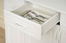 Два ящика отличны для хранения мелочей: столовых приборов, салфеток и редко используемых кухонных аксессуаров. Ящики легко и бесшумно открываются и закрываются.