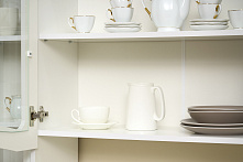 Фасады из матового МДФ не бликуют и не требуют частой полировки, что придаёт им аккуратный и стильный вид. Белый матовый цвет хорошо сочетается с разнообразными аксессуарами и текстилем, позволяя легко обновлять интерьер по собственному усмотрению.