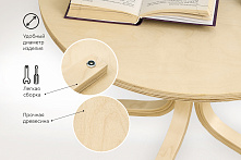 Мы максимально упростили конструкцию, чтобы вы не тратили время на изучение сложных схем. Ножки вкручиваются в специальные пазы на столешнице — это занимает пару минут и не требует мужской силы или набора отверток. Весь стол весит 5.8 кг, он устойчив, но при этом его легко передвинуть во время уборки.