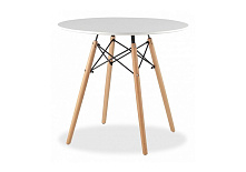 Несмотря на диаметр столешницы в 80 см, за этим столом комфортно разместятся четыре человека — оптимальное решение для семейных обедов в тесной кухне. Высота стола 72 см делает его удобным для сидения взрослым, а основание из массива дерева обеспечивает устойчивость.