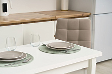 Этот стол идеально подходит для компактных кухонь. В сложенном виде его размеры — всего 60 на 90 см, что позволяет экономить пространство и не загораживать проход. Его дизайн обеспечивает максимальное использование полезной площади.