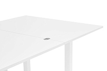 Основание из ЛДСП делает стол устойчивым, он не поддается качанию и не скрипит даже при активной эксплуатации. Прямая ножка добавляет стабильности и выдерживает нагрузку в разложенном виде.