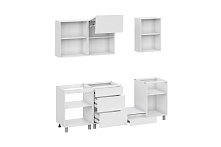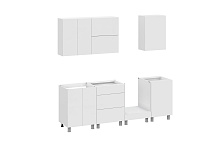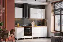 Фасады гарнитура не комплектуются ручками, но имеют с обратной стороны глухие отверстия рассчитанные на установку ручек 128 мм.