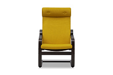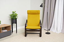 Жёлтый цвет обивки выделяет кресло на фоне интерьера, создавая атмосферу тепла и энергии. Его компактные размеры — 65.5 см в ширину, 85 см в глубину и 105 см в высоту — позволяют ему легко вписаться даже в небольшое пространство, обеспечивая личный уголок уюта.