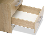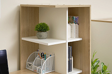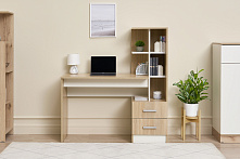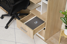 Под столом расположены два ящика, в которых удобно хранить канцелярские принадлежности и блокноты. Полки позволяют разместить часто используемые вещи или книги, что упрощает организацию рабочего пространства.