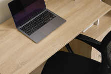 Хотя на столе нет специальных отверстий для проводов, его просторная поверхность позволяет грамотно расположить технику так, чтобы провода оставались под контролем и легко достигали розеток.