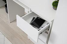 Стол Челси имеет три ящика, которые позволяют удобно разместить канцелярские принадлежности и другие мелочи. Даже при большом количестве документов или материалов, для них найдётся место. Это помогает поддерживать порядок на рабочем месте и избегать отвлечений при поиске необходимых предметов.