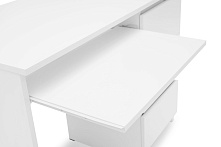 Белый глянец фасадов придаёт столу современный стиль, который легко впишется в любой интерьер. Фасады из глянцевого ЛДСП эстетичны и просты в уходе — протирка устраняет следы пыли и загрязнений.