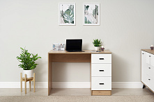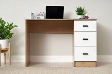 С тремя вместительными ящиками вы легко организуете хранение бумаг, ручек, степлеров и прочей канцелярии. Столешница размером 110 см в ширину и 59 см в глубину позволяет удобно расположить необходимые вещи, не создавая беспорядка. Это идеальный баланс между компактностью и функциональностью.