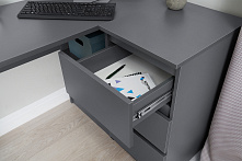 Полезная информация: Сборка стола универсальная, есть возможность собрать угол на любую сторону, ориентируясь на своё удобство. Для продления срока службы лучше использовать подставку под горячее и не хранить тяжелые папки на открытых полках.