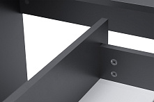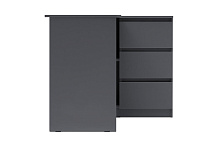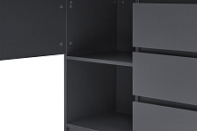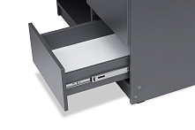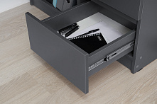 Три выдвижных ящика идут на шариковых направляющих — открываются плавно. Высота ящиков стандартная, поэтому сюда помещаются канцелярия, блокноты, зарядки и даже небольшой планшет. Открываются за край фасада, ручек нет — выглядит аккуратно, ничего не цепляется.