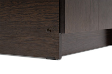 Венге — это цвет, который придаёт тумбе элегантность и глубину, хорошо вписывается в различные интерьерные решения, от классического до современного. Матовая текстура фасадов из ЛДСП добавляет теплоту и делает поверхность более практичной в ежедневном использовании, так как на ней меньше заметны отпечатки и другие мелкие следы.