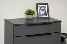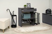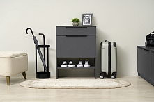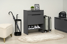 Графит серый цвет придаёт тумбе современный и изысканный вид, который легко впишется в любой интерьер. Матовая текстурная поверхность из ЛДСП не бликует и создаёт гармоничное продолжение интерьера прихожей. Пластиковые ручки добавляют функциональности и завершают общий вид.