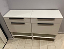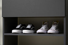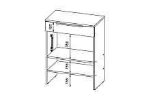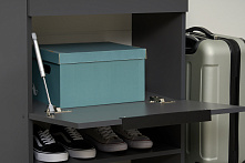 Тумба оснащена одним ящиком и полками, поддерживающими нагрузку до 5 кг на полку и ящик. Это даёт возможность удобно разместить обувь и мелкие предметы, такие как зонты или средства ухода за обувью. Наличие газлифтов обеспечивает лёгкий и тихий доступ ко всем внутренним отделениям, что особенно важно в утренней спешке.