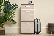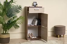 Если у вас небольшая прихожая, то эта обувница — отличный выбор. Благодаря своей универсальной сборке, её можно легко адаптировать под любые нужды, а наличие полок и одного ящика добавляет функциональности. Если вещей немного, но их нужно компактно разместить — это ваш вариант.