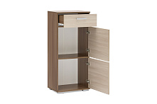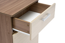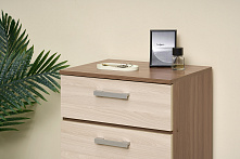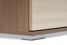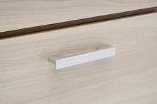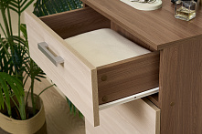 Тумба выполнена в сочетании светлого и тёмного ясень шимо, что позволяет ей с лёгкостью вписываться в любую обстановку. В отличие от глянцевых фасадов, здесь отсутствие блеска даёт спокойный матовый эффект, который не отвлекает внимание. Это идеальное решение для тех, кто ищет что-то спокойное, но современное.