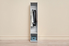 Внутреннее содержимое пенала включает штангу для того, чтобы аккуратно развесить предметы одежды. Также присутствуют полки, идеально подходящие для обуви, коробок или других мелких вещей. Это позволяет вам организовать хранение даже при минимуме доступного пространства.