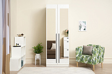 Шкаф 2-х створчатый Берген с зеркалами белое дерево