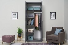 Шкаф 2-х створчатый Берген с зеркалом серый графит