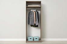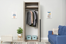 Шкаф шириной 80.1 см и глубиной 50.6 см — отличное решение для спальни или прихожей, где требуется функциональность. Высота 221.6 см позволяет разместить одежду, эффективно использовав высоту помещения.