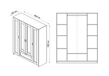 Шкаф четырехстворчатый Сириус венге с одним ящиком и двумя зеркалами