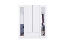 Шкаф четырехстворчатый Сириус белый с одним ящиком и двумя зеркалами
