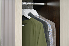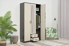 Что важно знать заранее: Шкаф включает штангу для белья и два ящика. Зеркала на фасадах помогают экономить пространство. Наличие зеркал встроено в функциональную часть шкафа.