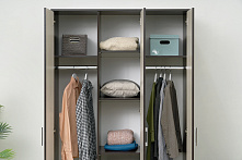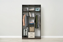 Шкаф Трио с фасадом «Лоредо» и корпусом «Венге» станет вашим незаменимым помощником в хранении вещей. Трёхдверная конструкция шириной 120 см и глубиной 48,7 см предлагает оптимальное сочетание висячей и сложенной одежды, предоставляя вам простор для любой сезонной смены гардероба.