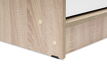 Раздвижные двери — это плюс, если шкаф ставится рядом с кроватью или в узком коридоре. Двери не требуют дополнительного пространства при открывании, не блокируют проход. Механизм простой, ход плавный — не гремит, не заедает. Проверено: не мешает даже если кровать довольно близко.