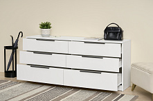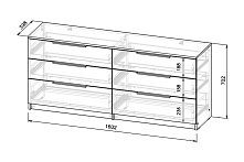 С вместительными шестью ящиками, каждый выдерживающий до 5 кг, комод идеально подходит для организации семейного гардероба, белья или детских игрушек. Ширина в 160 см делает его универсальным решением как для спален, так и для гостиных.