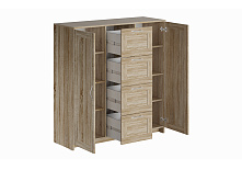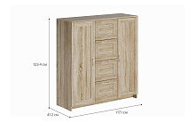 Этот комод с двумя дверцами и четырьмя ящиками — находка для тех, кто ценит порядок. Благодаря четырём ящикам с шариковыми направляющими, вы легко организуете хранение одежды или документов. Внутренние размеры ящиков позволяют разместить вещи так, чтобы всё было под рукой — 30.9 x 36.2 x 19.2 см для каждого ящика. Полки внутри тумбы также помогут вам разместить книги или декоративные элементы.