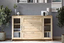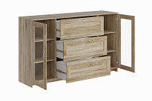 Комод с дверцами Сириус со стеклом и 3 ящиками сонома